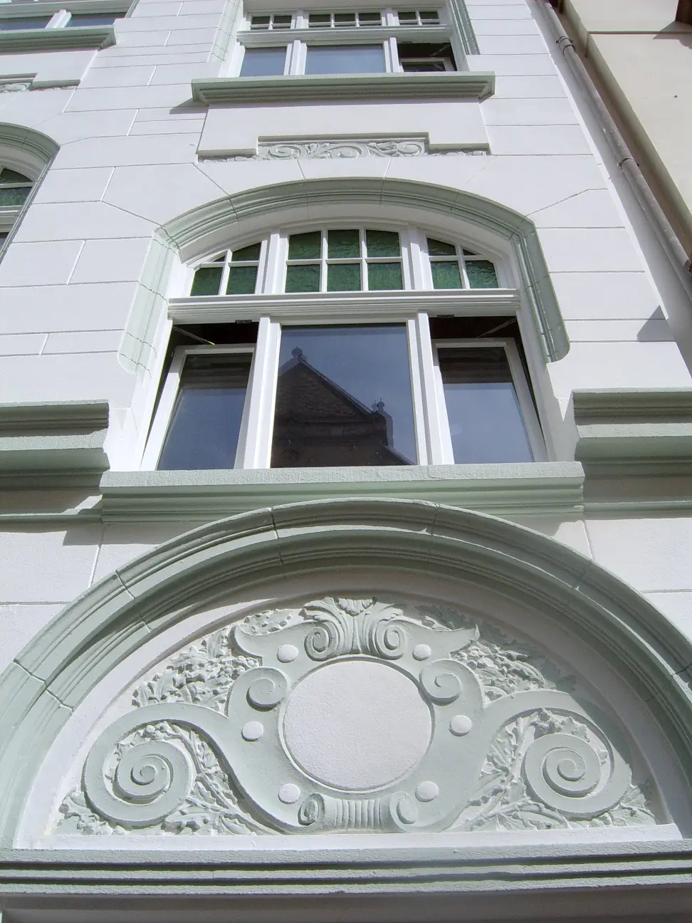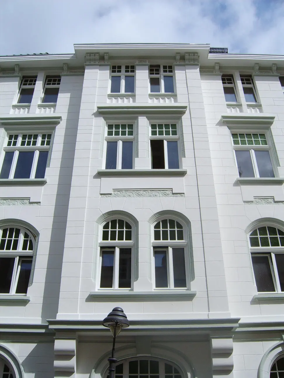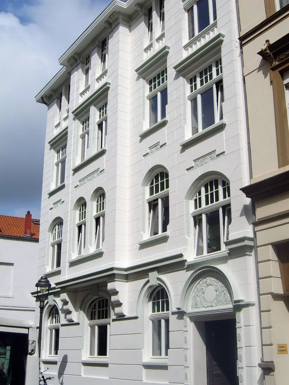 Kernsanierung: Neuer Dachstuhl und Einbau großflächiger Gauben. Isolierung, Eindeckung, und Ausbau des Dachgeschosses. Gartenseitig großzügige Balkone und Dachterrasse. Integrierung neuer Bäder im neuen Grundriss der Wohnungen. Neue zeitgemäße Heizungsanlage mit Warmwasseraufbereitung und Fußbodenheizung. Einbau großflächiger moderner Isolierglasfenster. Aufbringen eines Wärmeverbundsystems auf den gesamten Fassadenflächen des Hauses.Einbau eines schwimmenden Estrichs in allen Ebenen mit integrierter Schalldämmung. Durch Aufstockung und Ausbau des Souterrains entstanden hier 4 hochwertige moderne Eigentums-Wohneinheiten.