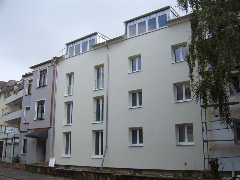 Kernsanierung: Neuer Dachstuhl und Einbau großflächiger Gauben. Isolierung, Eindeckung, und Ausbau des Dachgeschosses. Gartenseitig großzügige Balkone und Dachterrasse. Integrierung neuer Bäder im neuen Grundriss der Wohnungen. Neue zeitgemäße Heizungsanlage mit Warmwasseraufbereitung und Fußbodenheizung. Einbau großflächiger moderner Isolierglasfenster. Aufbringen eines Wärmeverbundsystems auf den gesamten Fassadenflächen des Hauses.Einbau eines schwimmenden Estrichs in allen Ebenen mit integrierter Schalldämmung. Durch Aufstockung und Ausbau des Souterrains entstanden hier 4 hochwertige moderne Eigentums-Wohneinheiten.